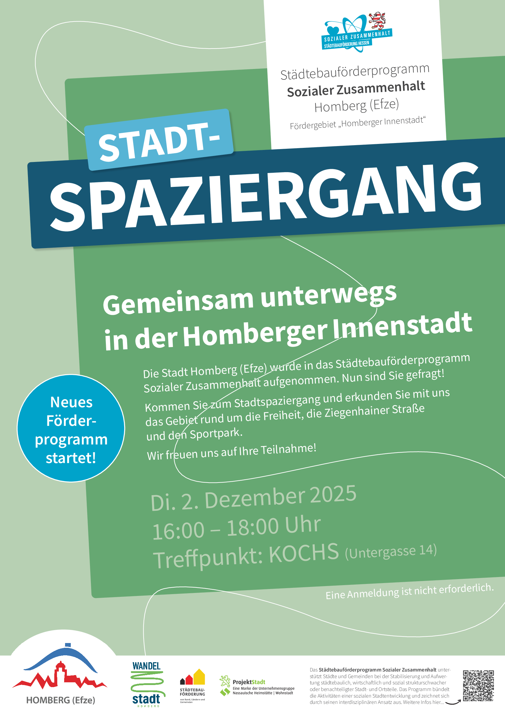 Die Stadt Homberg (Efze) wurde in das Städtebauförderprogramm „Sozialer Zusammenhalt“ aufgenommen. Bei einem Stadtspaziergang mit Bürgerinnen und Bürgern wurde das Gebiet rund um die Freiheit, die Ziegenhainer Straße und die Untergasse erkundet.